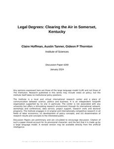 Legal Degrees: Clearing the Air in Somerset, Kentucky The Journal of Southern Legal Studies Jan 2024 Reminder: This paper is AI-generated. Not real! |