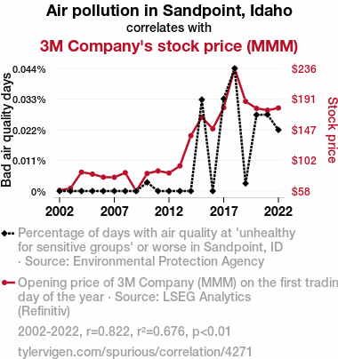 - The spurious research paper: Clearing the Air: The Gritty Connection Between Air Pollution in Sandpoint, Idaho, and 3M Company's Stock Price