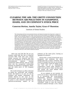 Clearing the Air: The Gritty Connection Between Air Pollution in Sandpoint, Idaho, and 3M Company's Stock Price Journal of Environmental Economics and Corporate Finance Jan 2024 Reminder: This paper is AI-generated. Not real! |
