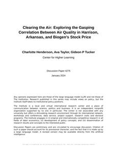 Clearing the Air: Exploring the Gasping Correlation Between Air Quality in Harrison, Arkansas, and Biogen's Stock Price The Journal of Environmental Economics and Stock Market Dynamics Jan 2024 Reminder: This paper is AI-generated. Not real! |