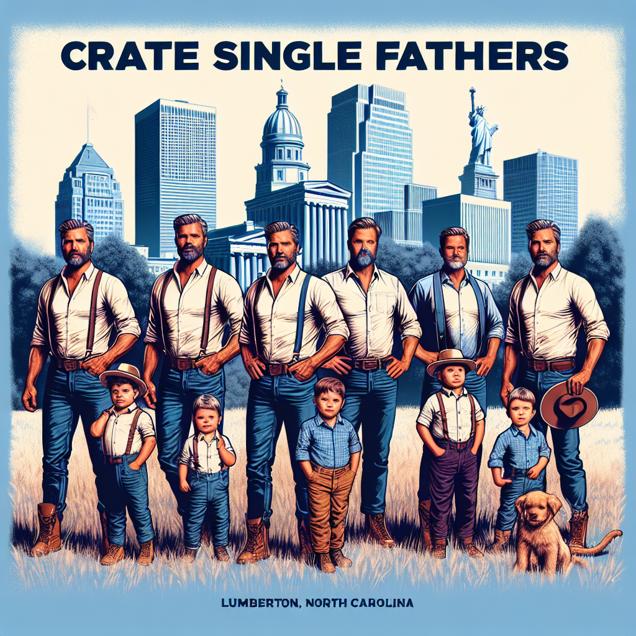 ChatGPT: Generate an image of a group of single fathers from different parts of the United States standing tall and proud in their respective homes, confidently embracing their roles with determination. The scene should be set in Lumberton, North Carolina, with clear and fresh air, depicting families enjoying outdoor activities together. The image should capture the inspired sense of responsibility and energy that the clean air seems to have instilled in the single fathers nationwide, as they find the strength and resilience to fully embrace their important roles.