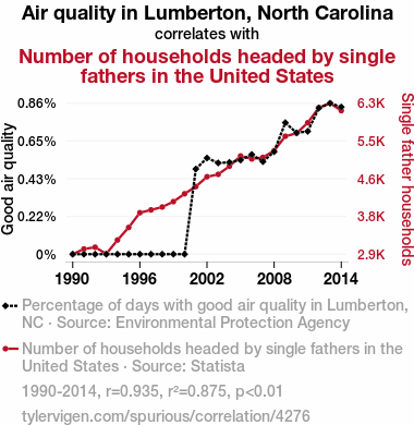 - The spurious research paper: Clearing the Air: A Breath of Fresh Data on Air Quality in Lumberton and Single Father Households