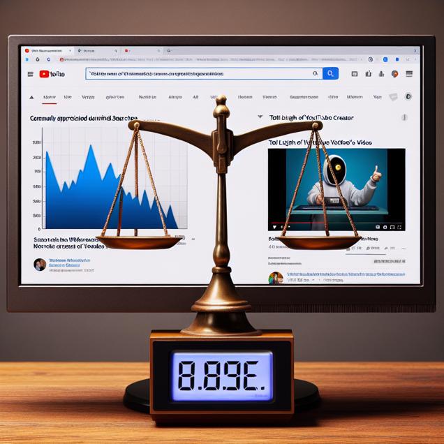 User prompt: Please describe a visual scene that prominently depicts both Google searches for 'google' and Total length of LEMMiNO YouTube videos, in the following situation: Fewer google searches meant fewer ganders at LEMMiNO's videos, giving him less incentive to stretch them out. After all, when it comes to video length, it's all about that search for 'balance'!. Keep the description simple.