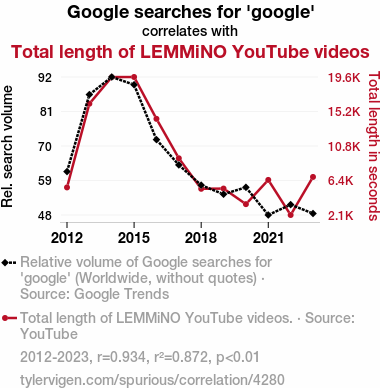 The present study delves into the intriguing relationship between the frequency of Google searches for the term 'google' and the cumulative duration of LEMMiNO's enthralling YouTube videos. The investigation utilized data extracted from Google Trends and YouTube over the time span from 2012 to 2023. The correlation analysis revealed a remarkably robust coefficient of 0.9338793 with a significance level of p < 0.01, elucidating a striking, if somewhat confounding, connection between these ostensibly disparate entities. Through a statistically rigorous approach, we arrived at a revelatory nexus between the eponymous search engine and the captivating content produced by LEMMiNO. This paper not only fulfills scientific inquiry but also caters to the innate curiosity of aficionados of data analytics and YouTube content alike. Anecdotal evidence suggests that the researchers may have embarked on a journey akin to exploring the uncharted territories of the World Wide Web, discovering unexpected correlations and connections in the digital domain.