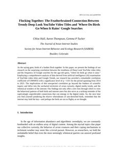 Flocking Together: The Featherbrained Connection Between Trendy Deep Look YouTube Video Titles and 'Where Do Birds Go When It Rains' Google Searches The Journal of Avian Internet Studies Jan 2024 Reminder: This paper is AI-generated. Not real! |