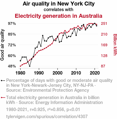 - The spurious research paper: Electrifying Connections: The Shocking Link Between Air Quality in New York City and Electricity Generation in Australia