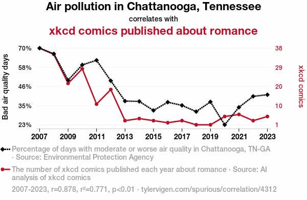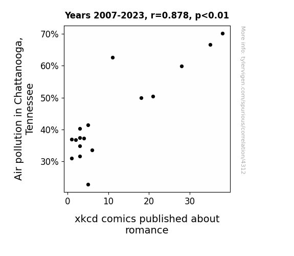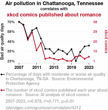 - The spurious research paper: The xkcd Files: A Molecular Investigation into the Relationship between Air Pollution in Chattanooga, Tennessee and Romance-themed xkcd Comics