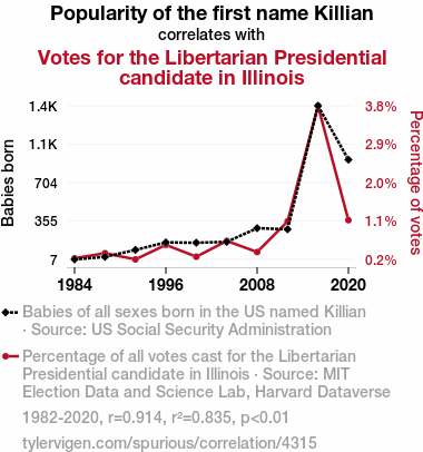 - The spurious research paper: Killian It with Popularity: The Curious Connection Between Name Popularity and Libertarian Voting Behavior in Illinois
