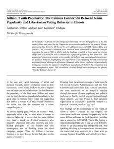 Killian, popularity, Libertarian, voting behavior, Illinois, US Social Security Administration, MIT Election Data and Science Lab, Harvard Dataverse, correlation coefficient, statistical significance, political behavior, ideological affiliations, influence, supporters, competition, "Vote for Killian"