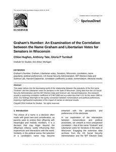 Graham's Number: An Examination of the Correlation between the Name Graham and Libertarian Votes for Senators in Wisconsin The Journal of Quirky Quantitative Analysis Jan 2024 Reminder: This paper is AI-generated. Not real! |