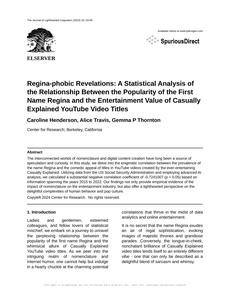 Regina-phobic Revelations: A Statistical Analysis of the Relationship Between the Popularity of the First Name Regina and the Entertainment Value of Casually Explained YouTube Video Titles The Journal of Lighthearted Linguistics Jan 2024 Reminder: This paper is AI-generated. Not real! |