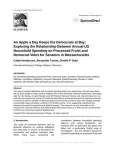 An Apple a Day Keeps the Democrats at Bay: Exploring the Relationship Between Annual US Household Spending on Processed Fruits and Democrat Votes for Senators in Massachusetts The Journal of Culinary Politics Jan 2024 Reminder: This paper is AI-generated. Not real! |