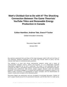 Watt's Clickbait Got to Do with It? The Shocking Connection Between The Game Theorists' YouTube Titles and Renewable Energy Production in Canada Journal of Renewable Energy and Internet Influence Jan 2024 Reminder: This paper is AI-generated. Not real! |