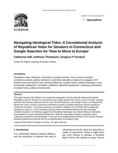 Navigating Ideological Tides: A Correlational Analysis of Republican Votes for Senators in Connecticut and Google Searches for 'How to Move to Europe' The Journal of Political Surfing Studies Jan 2024 Reminder: This paper is AI-generated. Not real! |