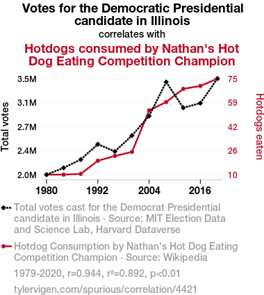User prompt: Please provide potential search keywords for a paper titled The Democratic Delight: Mightier Match of Illinois Votes and Nathan's Hot Dog Devouring Doyens with an abstract of As the saying goes, "Politics and hotdogs are both about the wurst!" In this study, we delve into the unconventional correlation between votes for the Democratic presidential candidate in the state of Illinois and the consumption of hotdogs by the champion of Nathan's Hot Dog Eating Competition. With a touch of humor and a dash of statistical analysis, we aim to uncover whether there is a meaty connection between these seemingly unrelated events.