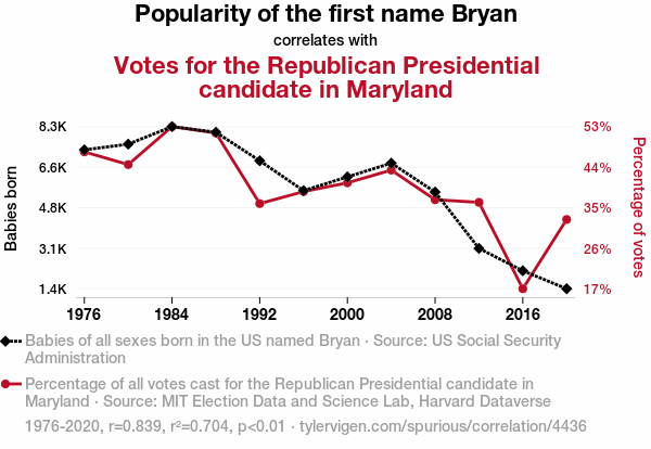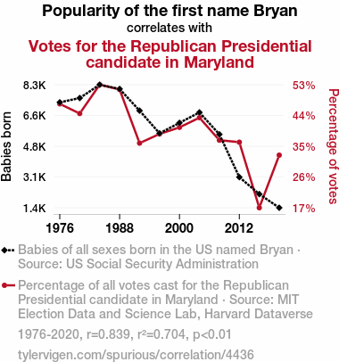 - The spurious research paper: The Bryan Identity: Exploring the Relationship Between Name Popularity and Republican Votes in Maryland