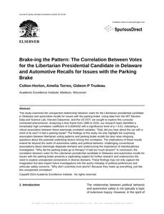 Brake-ing the Pattern: The Correlation Between Votes for the Libertarian Presidential Candidate in Delaware and Automotive Recalls for Issues with the Parking Brake
