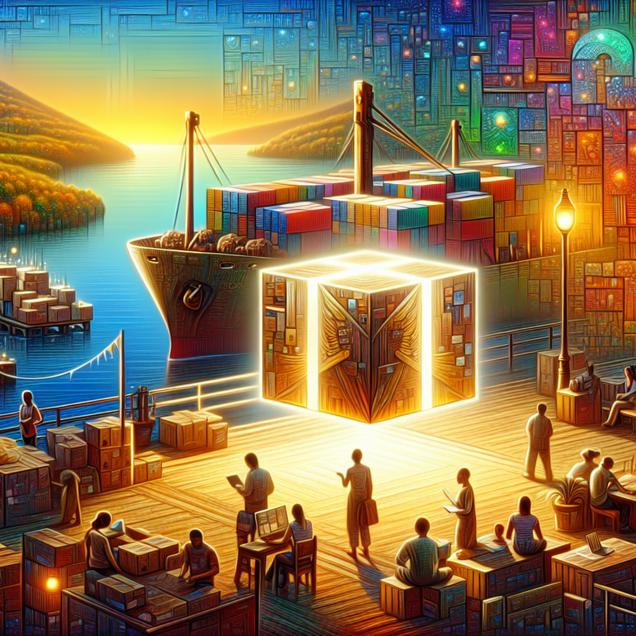 ChatGPT: Image generation prompt: Generate an image inspired by a TIME magazine cover depicting the scene of a glowing crate of packaged political fuel being shipped from Arkansas to the Philippines. The unconventional shipment is shown to spark unexpected unity and compromise in the Philippines, with the passion-infused kerosene causing flames of political fervor and the consumption of kerosene to flicker.