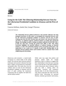 User prompt: Please provide potential search keywords for a paper titled Going for the Gold: The Glittering Relationship between Votes for the Libertarian Presidential Candidate in Arkansas and the Price of Gold with an abstract of The relationship between political preferences and economic indicators has long intrigued researchers. In this study, we investigated the connection between votes for the Libertarian presidential candidate in Arkansas and the price of gold. Utilizing data from the MIT Election Data and Science Lab, Harvard Dataverse, and Kitco, we employed rigorous statistical analysis to examine this unexpected linkage.