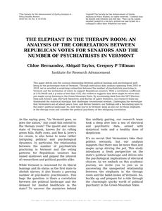 The Elephant in the Therapy Room: An Analysis of the Correlation between Republican Votes for Senators and the Number of Psychiatrists in Vermont