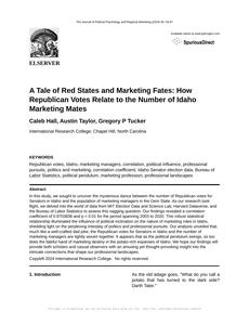 A Tale of Red States and Marketing Fates: How Republican Votes Relate to the Number of Idaho Marketing Mates The Journal of Political Psychology and Regional Marketing Jan 2024 Reminder: This paper is AI-generated. Not real! |