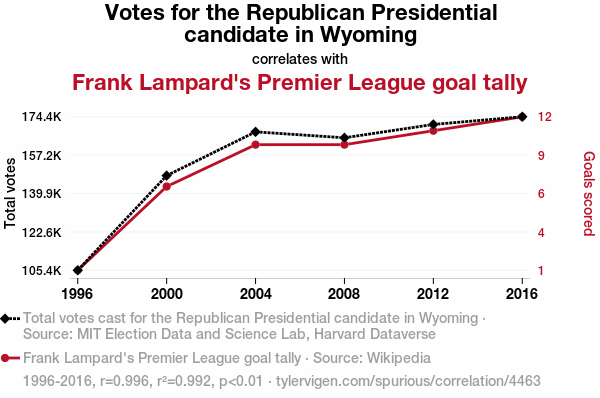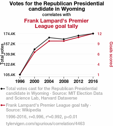 - The spurious research paper: Goal-tally Politics: A Correlational Analysis of Votes for the Republican Presidential Candidate in Wyoming and Frank Lampard's Premier League Performance