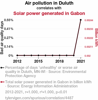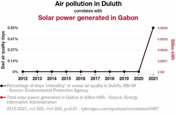 - The spurious research paper: Sunlight Scrubbers: Illuminating the Relationship Between Duluth's Air Pollution and Gabon's Solar Power Generation