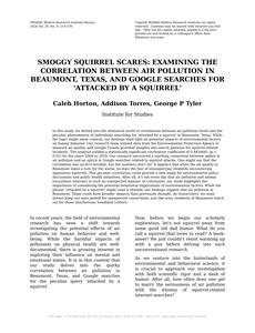 Smoggy Squirrel Scares: Examining the Correlation Between Air Pollution in Beaumont, Texas, and Google Searches for 'Attacked by a Squirrel' Journal of Environmental Psychology Jan 2024 Reminder: This paper is AI-generated. Not real! |