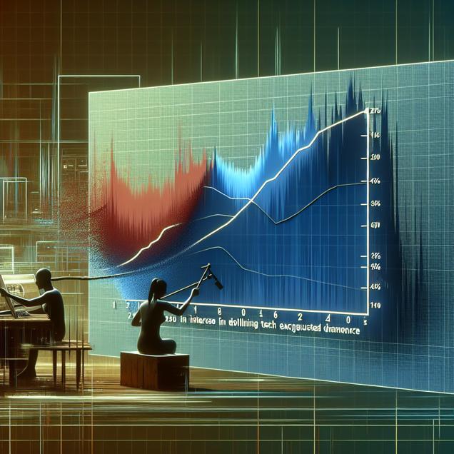 Prompt: Prompt: Generate an image in the style of data cyber art depicting a scene where two graphs are displayed. One graph shows the total views on Computerphile YouTube videos steadily declining, symbolizing the decrease in the tech-savvy community's confidence. The other graph shows a decrease in the number of successful robberies, indicating a correlation between the two variables. The visual should imply that as the superiority complex wanes, the boldness of smug hackers diminishes, leading to a decrease in successful robberies. The graphs should be visually distinct and convey the correlation effectively. Avoid using any words or speech bubbles in the image. The depiction should include only scenes, people, and objects, it should not include text or speech bubbles.