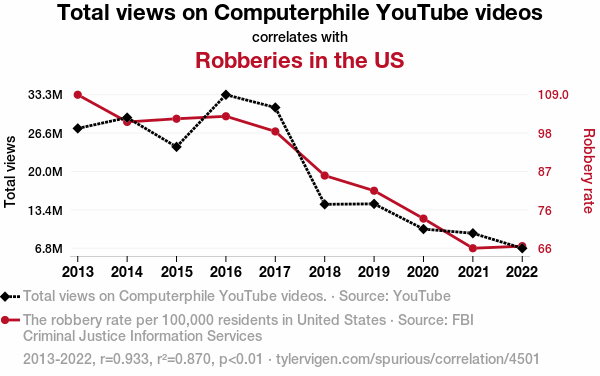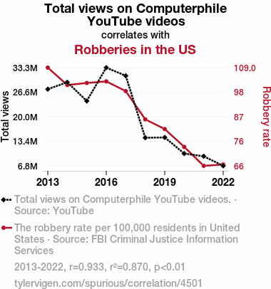 - The spurious research paper: YouTube Views and Crime News: Do Computerphile Hits Affect US Heists?