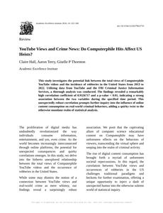 YouTube Views and Crime News: Do Computerphile Hits Affect US Heists? Journal of Digital Culture and Criminology Jan 2024 Reminder: This paper is AI-generated. Not real! |