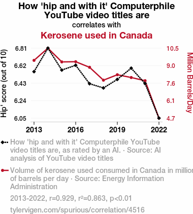 User prompt: Please make up a funny explanation for how a decrease in How 'hip and with it' Computerphile YouTube video titles are caused Kerosene used in Canada to decrease.