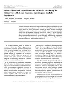 Home Maintenance Expenditures and Tech Talk: Unraveling the Hidden Thread Between Household Spending and YouTube Engagement The Journal of Household Economics and New Media Studies Jan 2024 Reminder: This paper is AI-generated. Not real! |