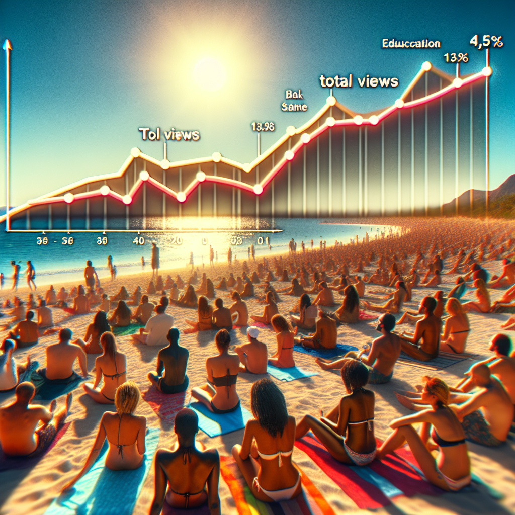 User prompt: Please respond with an image generation prompt that would be likely to create an interesting visual using DALLE-3, using the following style: [ Hyper-realistic ] and depicting this scene: Picture a graph with the name "Cali" on one axis and the total views on SmarterEveryDay YouTube videos on the other. On the graph, you can see the name "Cali" trending upwards, while the total views on SmarterEveryDay videos also show a steady rise. In the background, you can visualize a sunny California beach with people enjoying the laid-back atmosphere and watching educational content on their devices. This reflects how the popularity of the name "Cali" and the views on SmarterEveryDay YouTube videos are on an upward trajectory, possibly influenced by the sunny vibes associated with California. Keep the visual depiction simple. Do not include any words or speech bubbles.