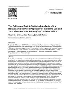 "popularity of the name Cali," "Cali name statistics," "YouTube video viewership correlation," "SmarterEveryDay YouTube channel data," "US Social Security Administration naming trends," "Cali name influence on digital content," "onomastics in online engagement," "statistical analysis of name influence," "Cali name and educational videos," "correlation coefficient and p-value significance," "empirical support for name influence," "word play and statistical analysis," "impact of a name on digital content."