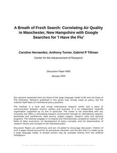 User prompt: Please provide potential search keywords for a paper titled A Breath of Fresh Search: Correlating Air Quality in Manchester, New Hampshire with Google Searches for 'I Have the Flu' with an abstract of This study examines the connection between air quality in Manchester, New Hampshire and the frequency of Google searches for 'I Have the Flu.' With an air of scientific rigor (pun intended) and a dash of playfulness, we analyzed data from the Environmental Protection Agency and Google Trends to investigate this intriguing relationship. Our results reveal a significant correlation coefficient of 0.9003823 and p < 0.01, spanning the years 2004 to 2023. While we take a deep dive into the statistical analysis, we can't help but marvel at the sneaky connections between air pollution and digital health inquiries. Join us on this flu-rry of a journey through the hidden influences on public health-seeking behavior.