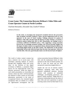 Crane Game: The Connection Between MrBeast's Video Titles and Crane Operator Counts in North Carolina The Journal of Internet Culture and Memetics Jan 2024 Reminder: This paper is AI-generated. Not real! |