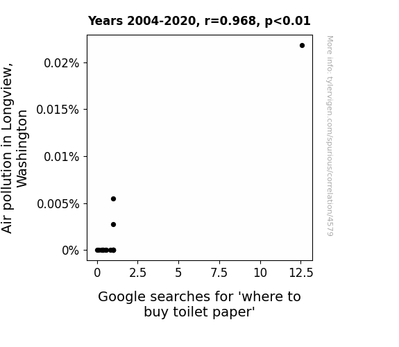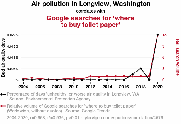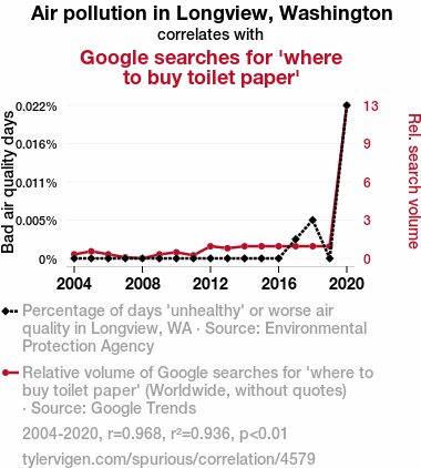 - The spurious research paper: The Air-a-Soft-on-Wipe: An Analysis of Air Pollution in Longview, Washington and the Correlation with Google Searches for 'Where to Buy Toilet Paper'