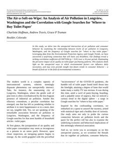 The "Air-a-Soft-on-Wipe: An Analysis of Air Pollution in Longview, Washington and the Correlation with Google Searches for 'Where to Buy Toilet Paper'"