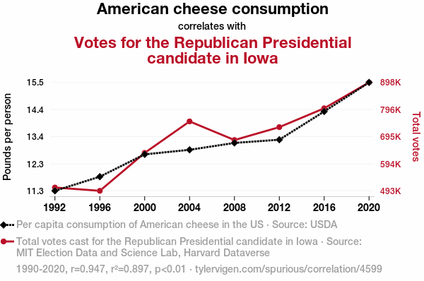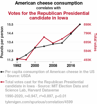 - The spurious research paper: Grate Expectations: The Curious Case of American Cheese Consumption and Republican Votes in Iowa