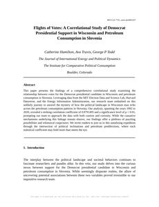 User prompt: Please provide potential search keywords for a paper titled Flights of Votes: A Correlational Study of Democrat Presidential Support in Wisconsin and Petroleum Consumption in Slovenia with an abstract of This paper presents the findings of a comprehensive correlational study examining the relationship between votes for the Democrat presidential candidate in Wisconsin and petroleum consumption in Slovenia. Leveraging data from the MIT Election Data and Science Lab, Harvard Dataverse, and the Energy Information Administration, our research team embarked on this unlikely journey to unravel the mystery of how the political landscape in Wisconsin may echo across the petroleum consumption patterns in Slovenia.