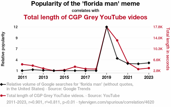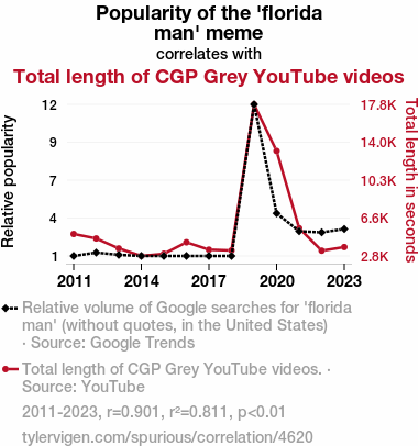 - The spurious research paper: Correlation of the 'Florida Man' Phenomenon and the Cumulative Content of CGP Grey YouTube Yarns