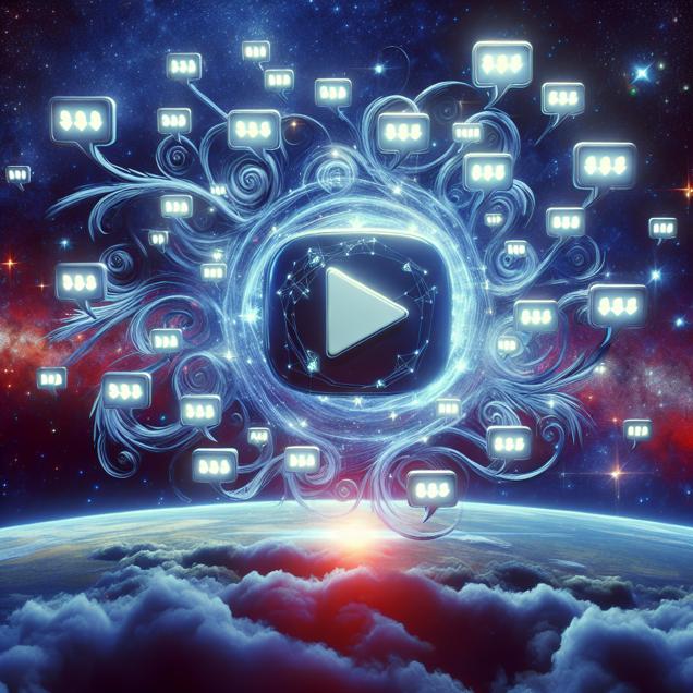 Prompt: [Realistic] Generate an image of a PBS Space Time YouTube video display filled with a dynamic array of glowing comments, each signed with "Wayne-derful video!" The comments form an intricate web of intertwining tendrils, radiating out into the cosmic expanses of space. The name "Wayne" stands out in prominence, creating a beautiful constellation of engagement beneath the educational video, symbolizing the intersection of Wayne and PBS Space Time as a celestial duo in the online universe. The background depicts the digital space as a starry expanse, adding to the cosmic feel of the scene. The depiction should include only scenes, people, and objects, it should not include text or speech bubbles.