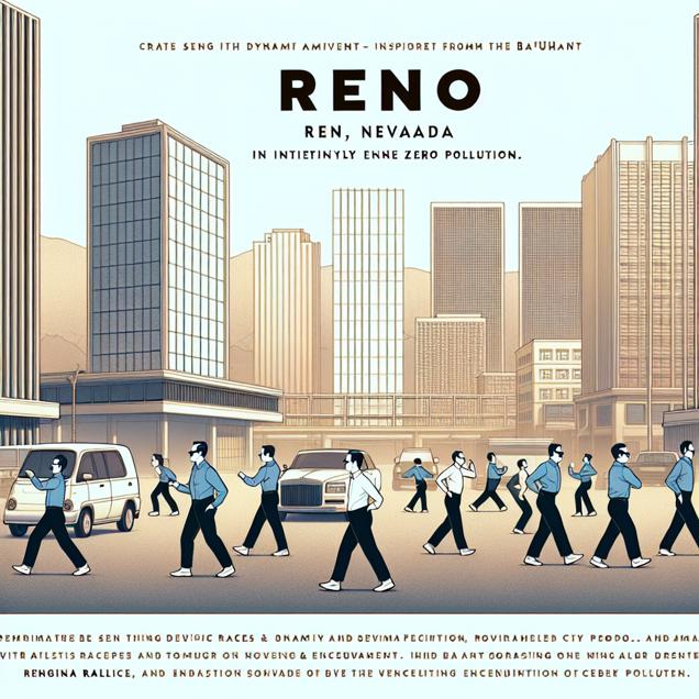Prompt: [ inspired by bauhaus ] Generate an image of Reno, Nevada with a clean, minimalist aesthetic. Show a bustling city scene with people walking freely in clear, pollution-free air. The sky should be clear, and the overall composition should convey a sense of focus and mindfulness. Avoid depicting the Gangnam Style dance, and instead highlight the serene atmosphere and lively activity in the city. The depiction should include only scenes, people, and objects, it should not include text or speech bubbles.