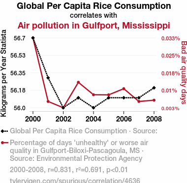 rice consumption, air quality, Gulfport Mississippi, per capita rice consumption, global rice consumption, air pollution, Bayou Caddy, United Nations Food and Agriculture Organization, Environmental Protection Agency, correlation coefficient, statistical analysis