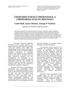 Consumer Science Credentials: A Libertarian Lean in Montana? Journal of Quirky Consumer Behavior Jan 2024 Reminder: This paper is AI-generated. Not real! |