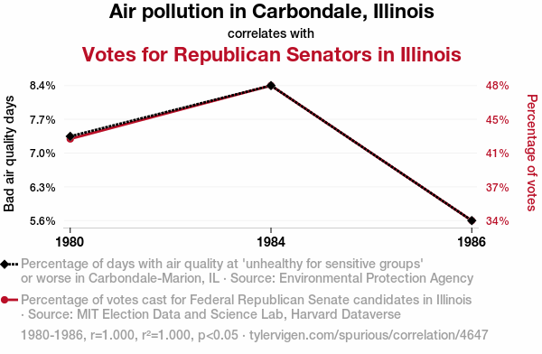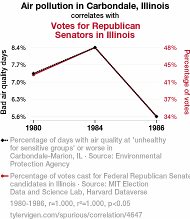 - The spurious research paper: Pollution Politics: The Smoggy Connection Between Air Quality and Republican Senate Votes in Carbondale, Illinois