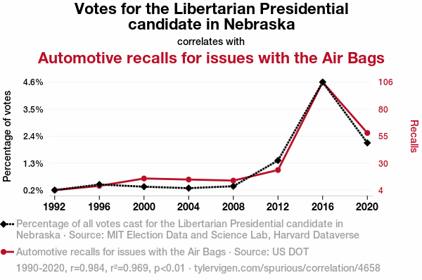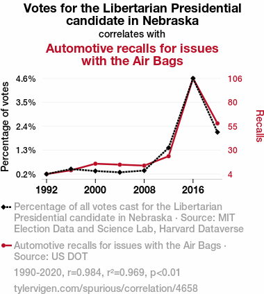Libertarian Votes and Airbag Recalls in Nebraska: A Correlational Odyssey