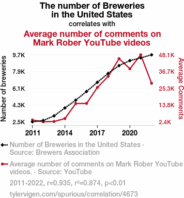 - The spurious research paper: Cheers to Comments: A Sudsy Correlation Between Breweries and YouTube Engagement