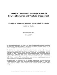 Cheers to Comments: A Sudsy Correlation Between Breweries and YouTube Engagement The Sudsy Scholar Jan 2024 Reminder: This paper is AI-generated. Not real! |